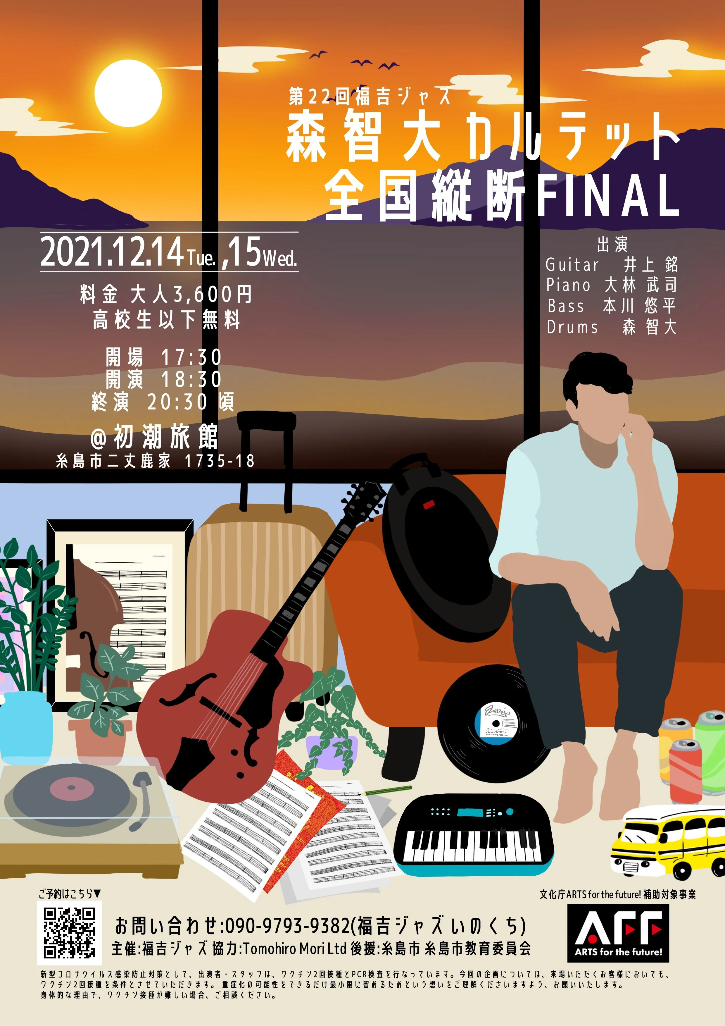 Tomohiro Mori Trio with Special Guest Tuesday, December 14, 2021 6:30 PM 7:30 PM 18:30 19:30 Tomohiro Mori New York (map) Google Calendar ICS Live at 初潮旅館 Itoshima, Japan文化庁ARTS for the future! 補助対象事業Takeshi Ohbayashi-PianoYuhei Honkawa-BassMay Inoue-Guitar 予約/Reservation